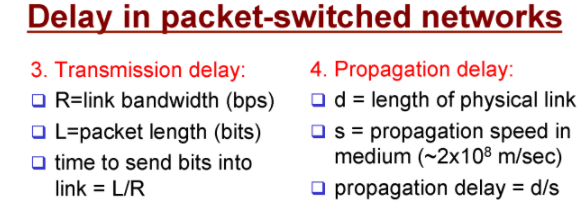 Packet switching 의 아주 적은 확율로 문제가 생기면 -----> DELAY   (원인은 4가지는 아래에 있다. )